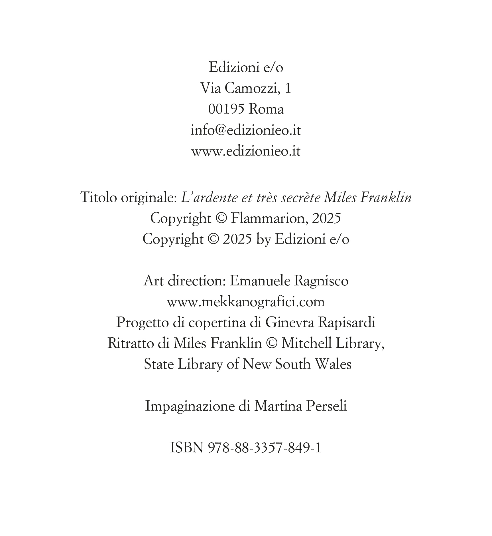 Australia, primi anni del Novecento. Stella Miles Franklin è la maggiore di sette tra fratelli e sorelle, vive in una fattoria dell’entroterra. Adora i panorami mozzafiato australiani e i grandi spazi, è un’eccellente cavallerizza, ma le va stretta la morale vittoriana di cui è ancora impregnata l’immensa colonia britannica. Miles non vede se stessa come moglie e madre, sottomessa al marito. Si vede libera, padrona del suo destino. Nel 1901, a vent’anni, scrive un romanzo, La mia brillante carriera, che inaspettatamente diventa un bestseller proiettandola agli onori della cronaca. Il successo del libro non le frutterà un centesimo, Miles vivrà in maniera semplice, ma con la certezza che la sua passione sia scrivere. È l’inizio di una vita avventurosa in cui Miles abbraccerà la nascente causa femminista, partirà per l’America, lavorerà come cavallerizza in un circo del Colorado, sosterrà il grande sciopero delle operaie a Chicago, partirà per l’Europa allo scoppio della Prima guerra mondiale e si arruolerà volontaria per prestare servizio in un ospedale da campo sulle montagne dei Balcani. Il tutto senza mai smettere di scrivere, ma celandosi sotto pseudonimi che le faranno vivere vite parallele, fino al meritato successo.